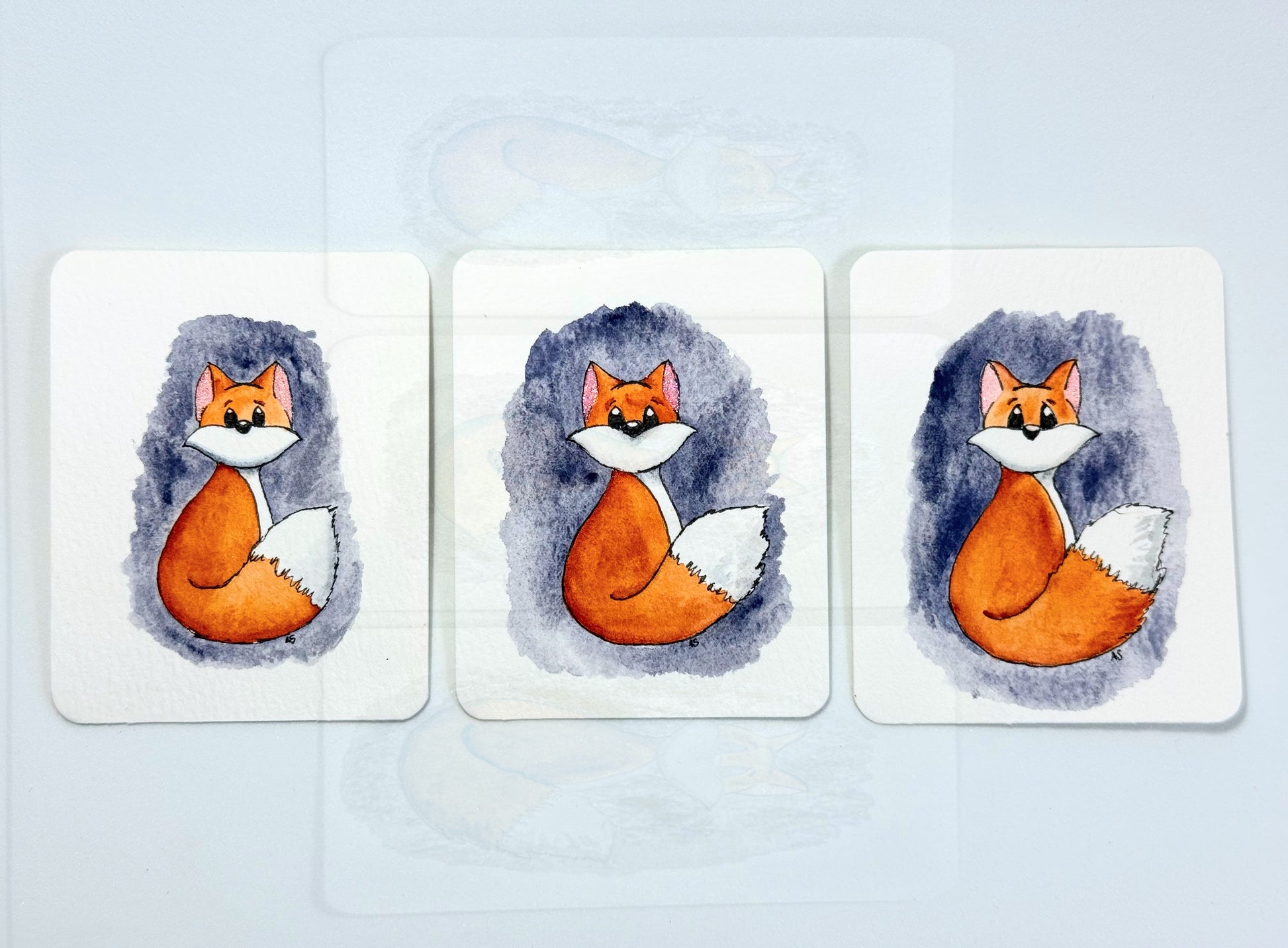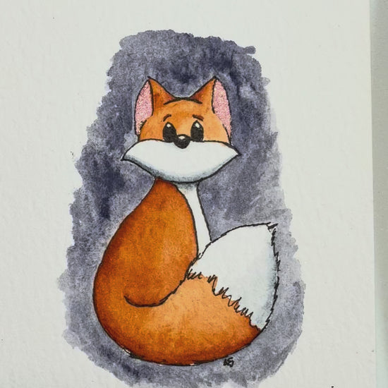 Introducing—Tiny Art! This is a collection of original artwork in a small format. It’s all the rage right now! The foxes are painted on 100% cotton watercolor paper using artist-grade paints. The piece measures 3 1/4” x 2 5/8”— please see the last photo for the ruler measurements that apply to all tiny art. This painting is the first in a collectible series of characters featured in my original stories called The Fox Tales. This is Ember Firefluff, the little fox who started it all! Ember is a curious and friendly little fox who loves to help out his woodland friends. He has a comic strip-style storyline on my Instagram page, and you can see his first adventure there!